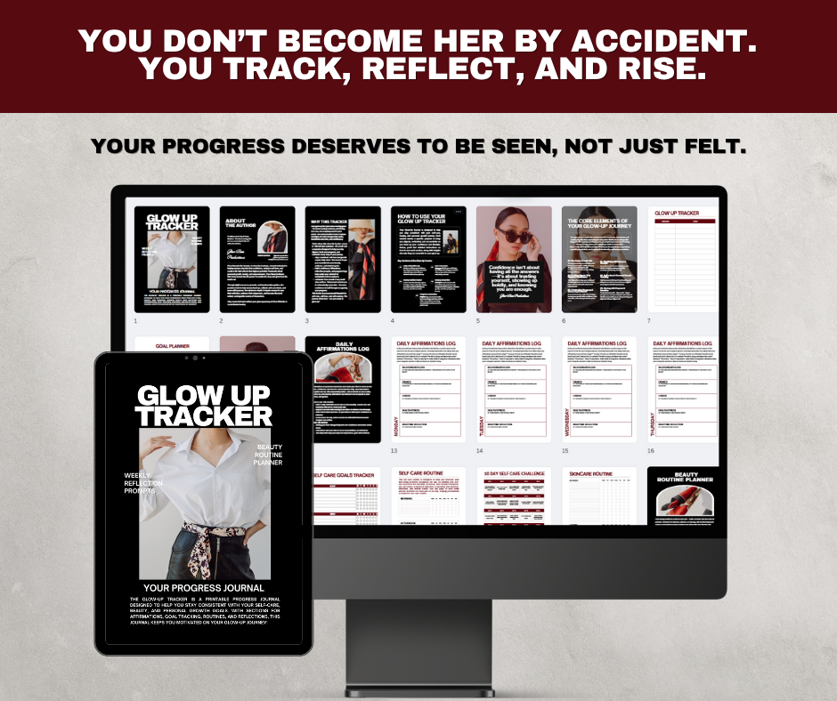 Transform your daily habits into glowing results — with the Glow Up Tracker Planner, your journey to the best version of YOU starts now!